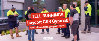 Boycott CSR Gyprock products until all workers are paid fairly!CSR's offer is downright offensive. It does not meet CPI and is well below industry standard in comparison to major competitors Boral and Etex who recently awarded workers a 4% and 3.5% increase respectively. CSR is now the biggest player in the industry with the lowest paid workforce. CSR could end all of this by paying its workers what they deserve. Thanks to the efforts of workers, profits have skyrocketed by 30% in just half a year. That’s $86.6 million lining the pockets of CSR’s wealthy shareholders and executives. And yet, no one has seen a cent of it except the big wigs. CSR boss Julie Coats has pocketed over $1 million in bonuses! Management has also threatened to cancel workers’ approved leave over Christmas, forcing them to work over the holidays. Taking away workers’ pay is one thing, but taking away their family time away is another. Shame, CSR! Stand with CSR workers and help end this bitter and pointless pay dispute before Christmas. Workers are depending on their income to put food on the table and presents under the tree.376 of 400 SignaturesCreated by CFMEU Vic/Tas