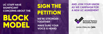 UC Staff Concerns about the Block ModelA ‘Block Model’ is a form of teaching where units are completed intensively over a 4-to-6-week period, rather than over a traditional Semester. The University of Canberra (UC) has recently embarked on a feasibility study to explore its adoption across undergraduate and postgraduate courses. It examined the experience of Victoria University and Southern Cross University, which operate versions of a Block Model. NTEU consultation with staff at those universities found that the introduction of a Block Model was accompanied by unreasonable and unsustainable workloads and, in the case of VU, mass job cuts. UC Staff discuss their concerns - watch the video. UC has recently been through an extensive, exhausting period of change, including the loss of hundreds of valued colleagues. The University has also endured governance concerns, financial crises, and leadership instability with five Vice-Chancellors in a 14-month period. Now is not the time to embark on further disruptive change, especially those that would require a substantial investment of resources for uncertain outcomes. We, the undersigned UC staff, express our concern about the potential for the introduction of a Block Model at UC.69 of 100 SignaturesCreated by NTEU ACT