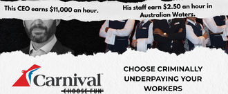 Carnival Cruises: End Exploitation on the Australian CoastDear Josh, We know that your business is ultra-profitable. We know that you're one of the world's wealthiest men. Ordinary people in Australia will not accept American Billionaires exploiting Cruise Ship crew on our Coast. You can stop this situation spiraling out of control. Sit down with the Maritime Union of Australia and negotiate an Agreement that delivers Carnival Crew the dignity and respect they deserve.2 of 100 SignaturesCreated by Maritime Union of Australia Sydney Branch